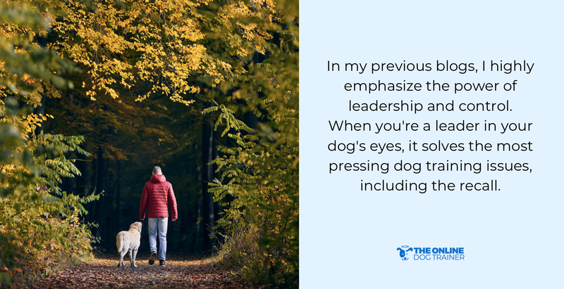 In my previous blogs, I highly emphasize the power of leadership and control. When you're a leader in your dog's eyes, it solves the most pressing dog training issues, including the recall.
