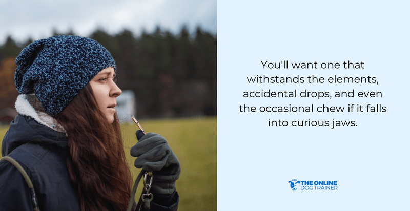 You'll want one that withstands the elements, accidental drops, and even the occasional chew if it falls into curious jaws.