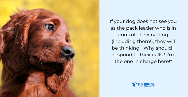 If your dog does not see you as the pack leader who is in control of everything (including them!), they will be thinking, “Why should I respond to their calls? I'm the one in charge here!”