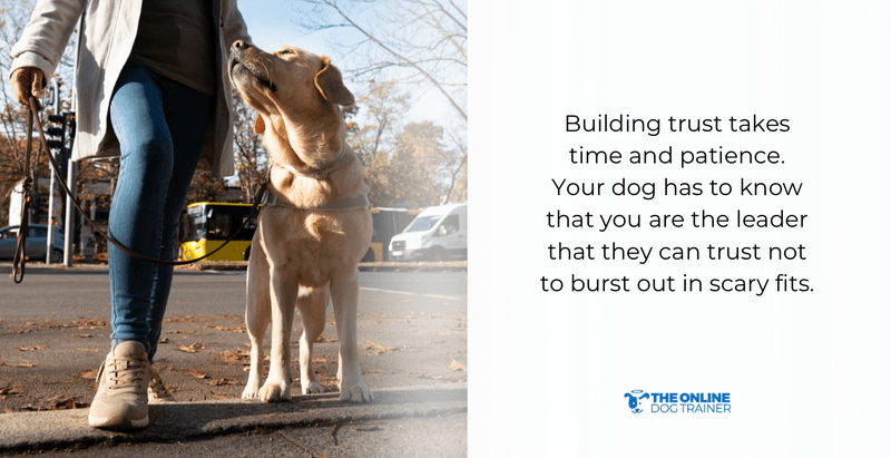 Building trust takes time and patience because your dog has to know that you are the leader. They need to trust that you won’t burst into scary fits.