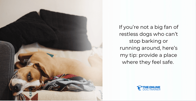 If you’re not a big fan of restless dogs who can’t stop barking or running around, here’s my tip: provide a place where they feel safe.