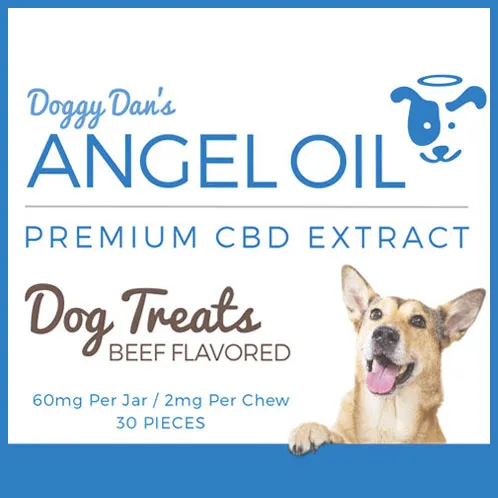 Overanxious, nervous, or hyperactive dog? Introducing Doggy Dan’s Angel Oil Treats. Give your furry friend the benefits of phytocannabinoid-rich hemp oil. Our beef flavored CBD Dog Treats are formulated with water-soluble CBD powder and other premium ingredients, providing superior results in tasty, dog-approved soft chews. Spoil them today!