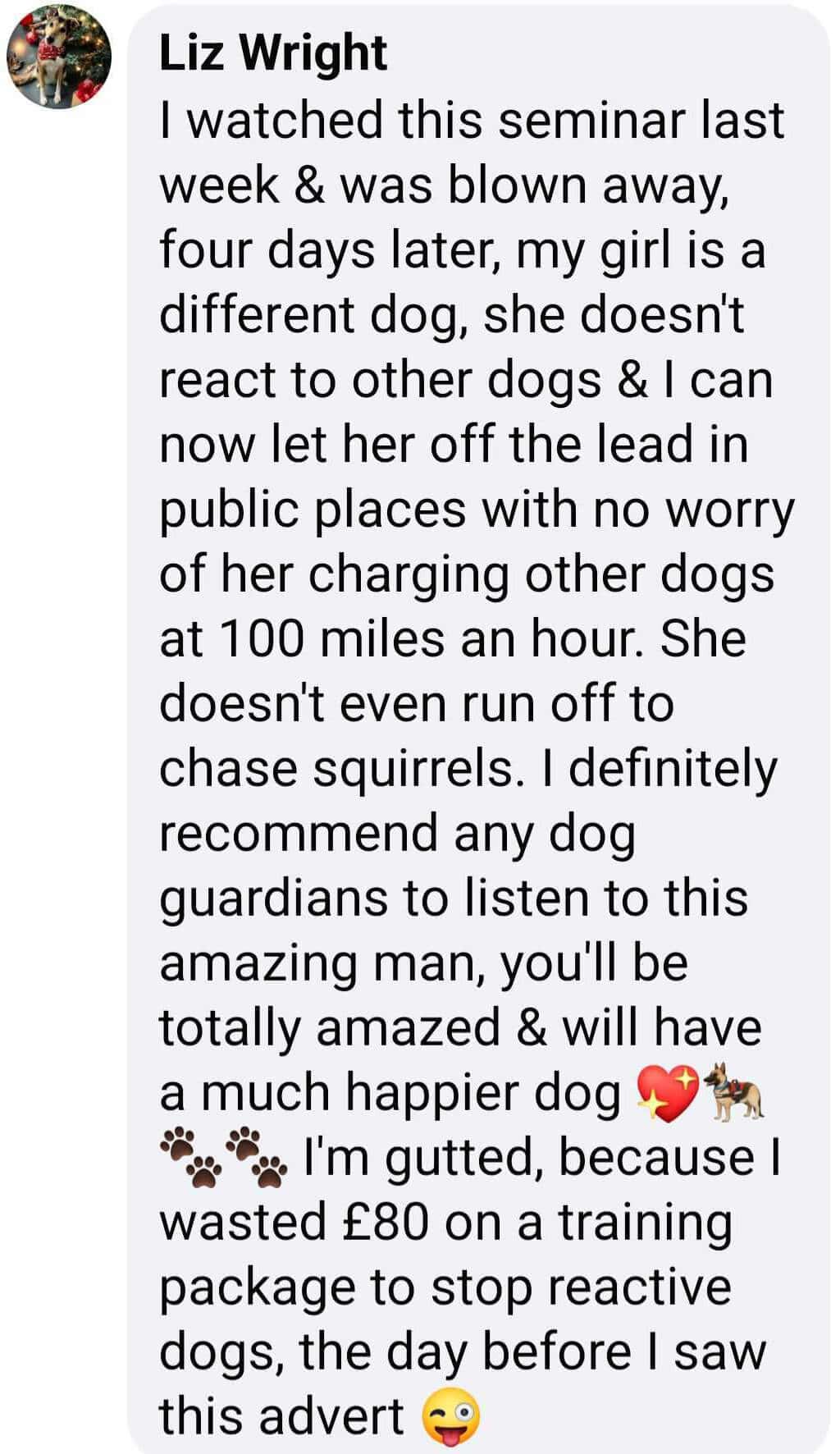 Practical Steps Provided: The webinar will offer actionable steps that can immediately be implemented with your dog to address reactivity issues.