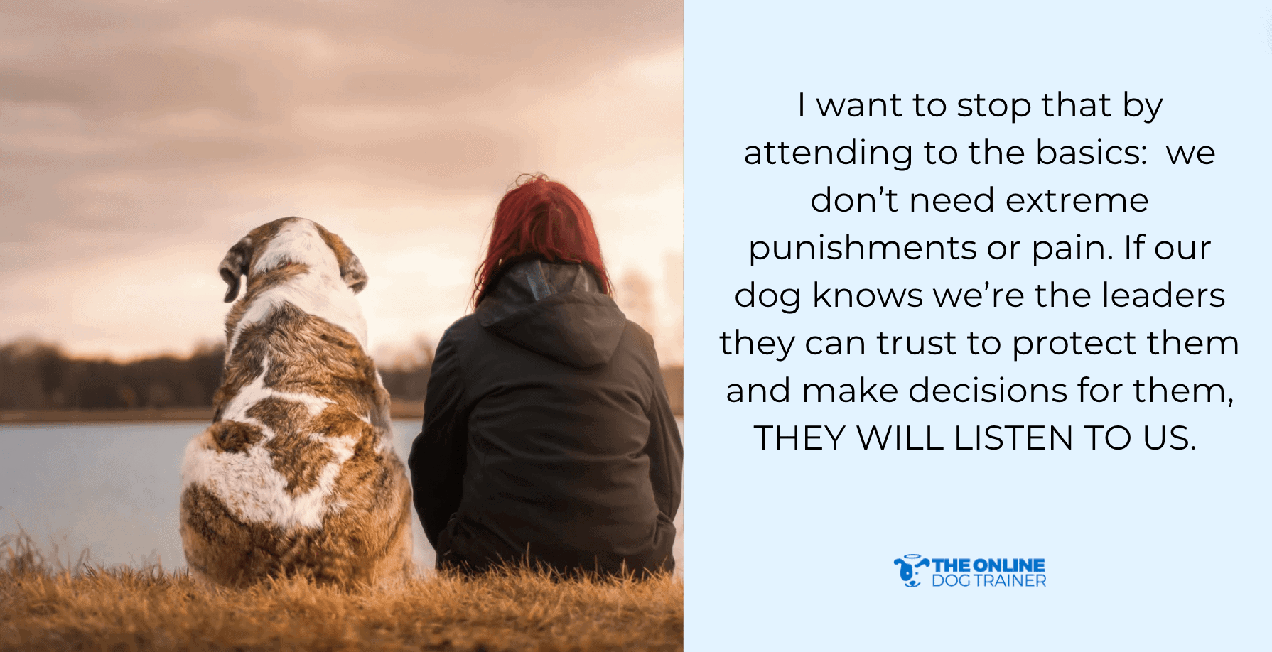I want to stop aversive training methods by basically saying: we don't need extreme punishments or pain. If our dog knows we're the leaders who protect and make decisions for them, WE CAN BE ASSURED THEY WILL LISTEN TO US.